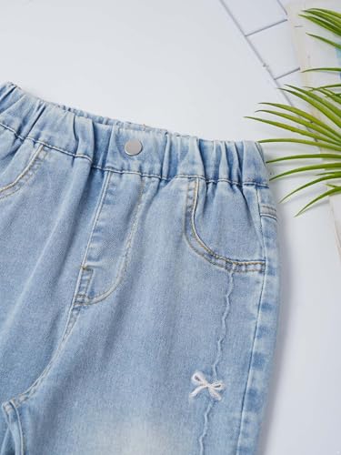 Hularka Kids Girls Bowknot Embroidery Flared Jeans Slim Fit Elastic Waist Denim Bell Bottom Pants Casual Denim Trousers 6