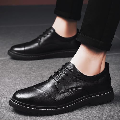 Mens Leather Cap Toe Causal Oxfords Vintage Round Toe Comfort Lug Sole Classic Lace-Up Business Formal Derby Sneakers Shoes for Wedding Party Fashion Office Work Daily 6