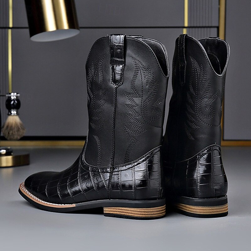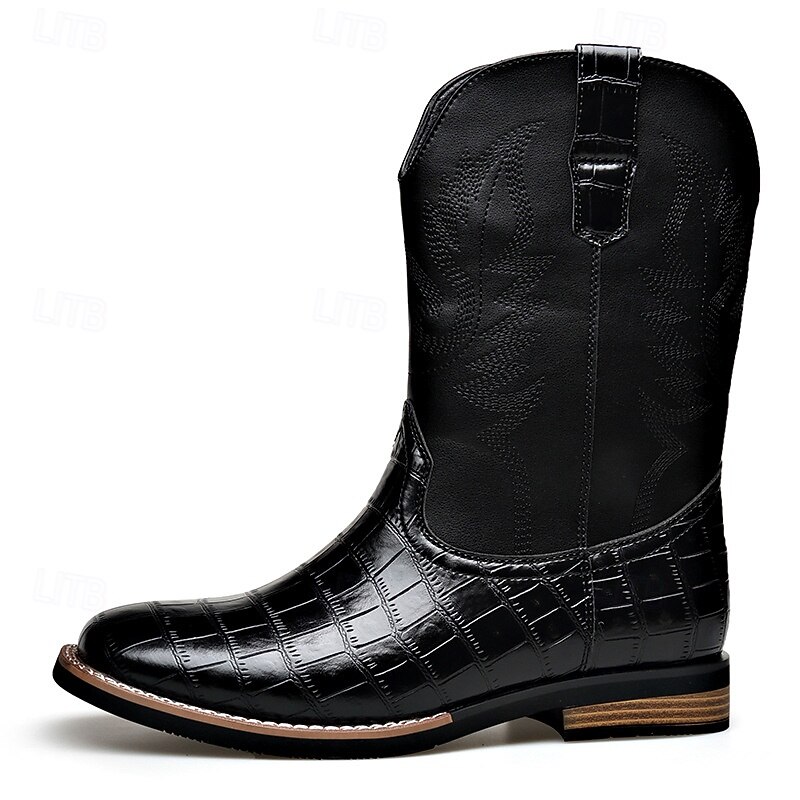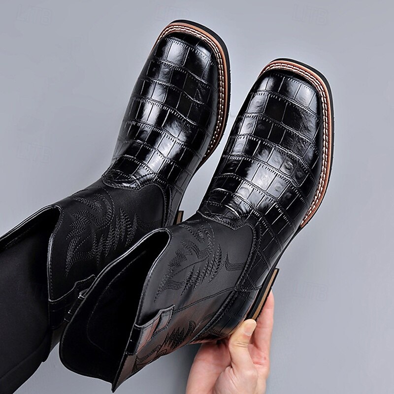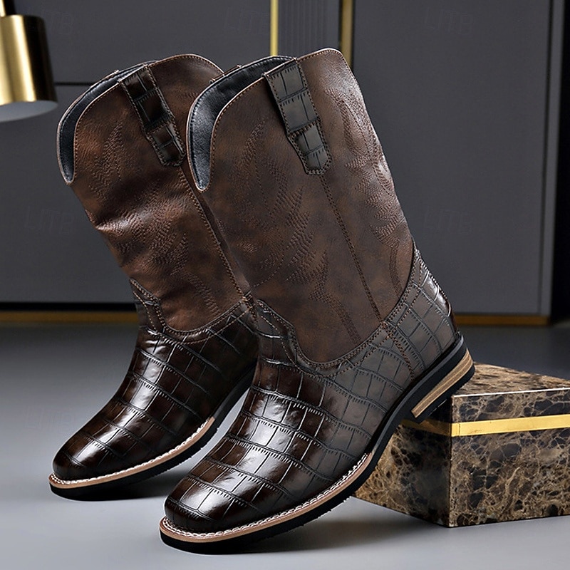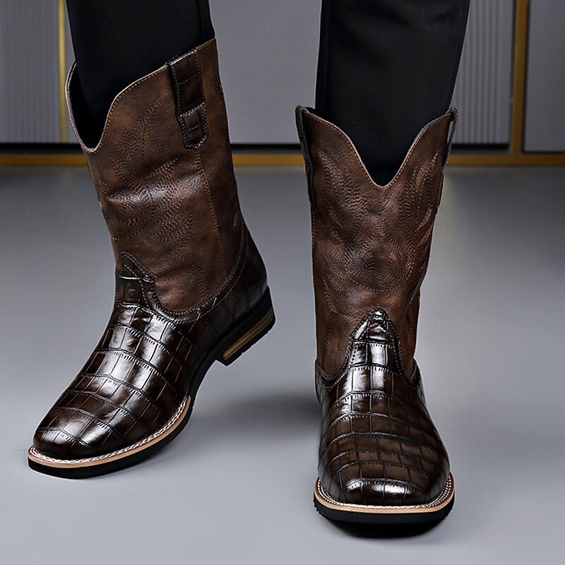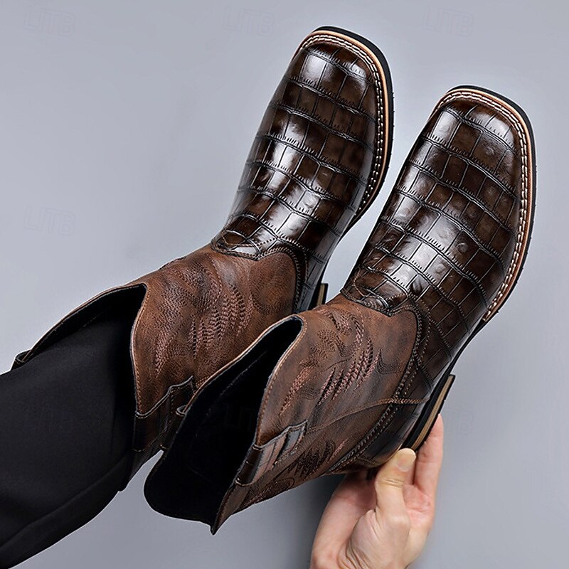 Men's Brown Faux Leather Crocodile Print Western Boots – Exotic Cowboy Style Footwear for Casual and Country Events 6