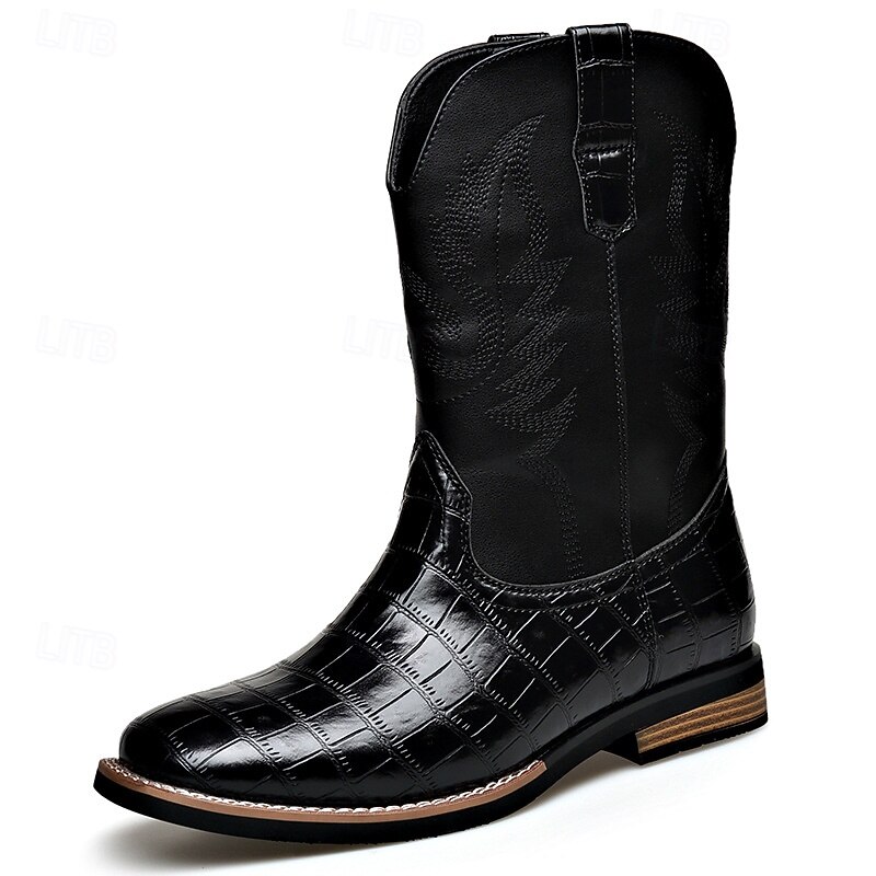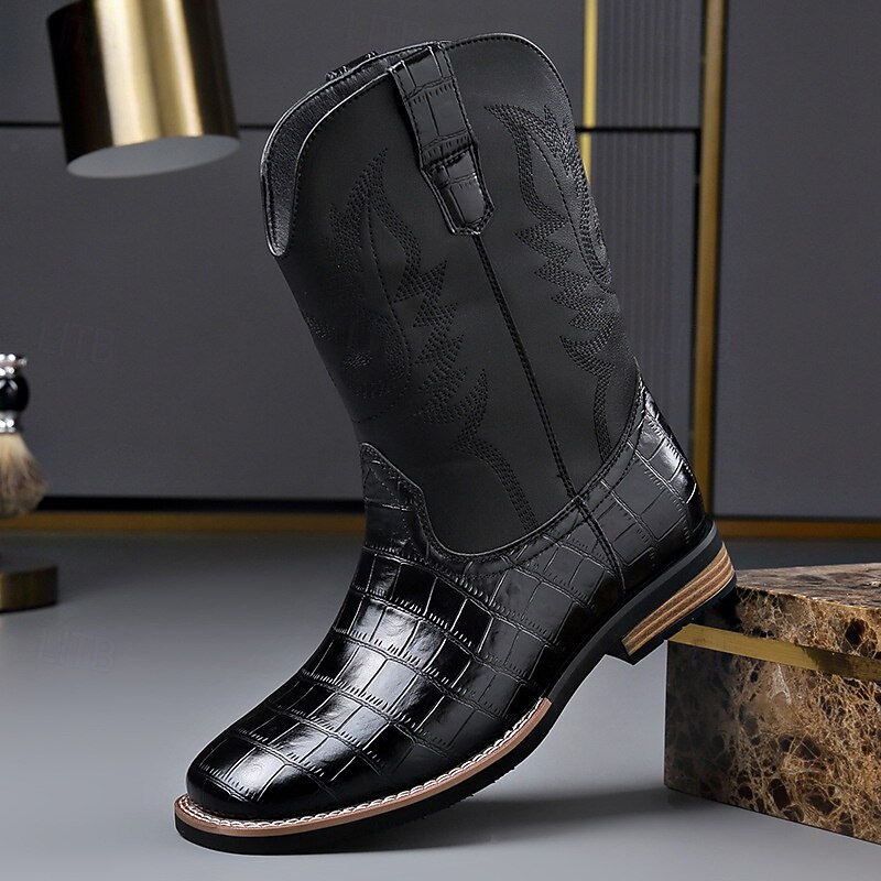 More information about Men's Brown Faux Leather Crocodile Print Western Boots – Exotic Cowboy Style Footwear for Casual and Country Events