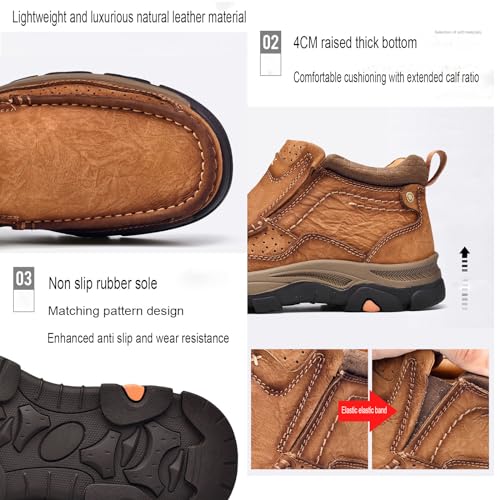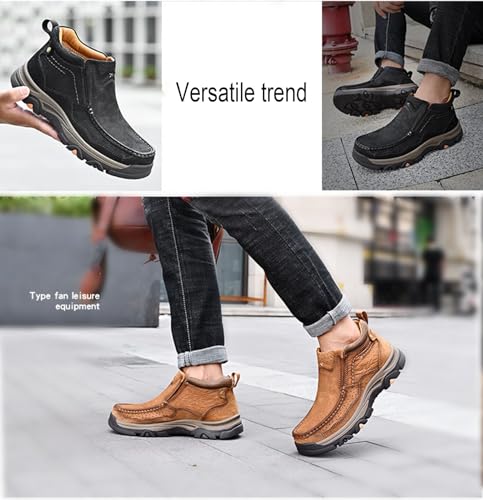 Men's Retro Leather Outdoor Loafers Classic Hand Sewn Anti Slip Hiking Shoes Comfortable and Breathable Driving Business Shoes 7
