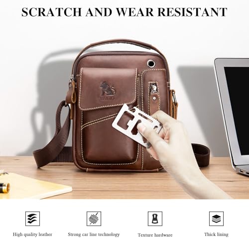 BAIGIO Men's Small Leather Shoulder Bag Messenger Pack Handbag Bag Crossbody Bag Man Purse Sling for Travel Business Work 6