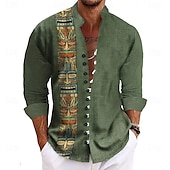 HOT ! Men's Mask Ethic / African Shirt Stand Collar Shirt Long Sleeve Vintage Retro Vacation Daily Wear Going out Spring Fall Mandarin Collar Band Collar Button-Down Linen Like Shirt Green