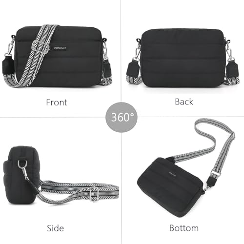 Puffer Crossbody Bags for Women, Lightweight Quilted Puffer Shoulder Bag, Cross Body Purse with Guitar Wide Strap Fit 6