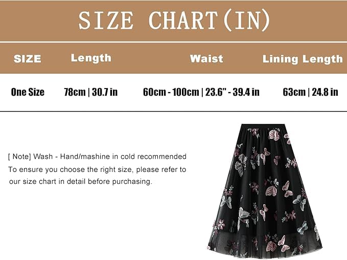 More information about Women's Embroidered Tulle Skirt Butterfly Pattern Layered Midi Skirts 2025 Trendy High Waist A-line Skirt