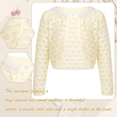 easyforever Girls Long Sleeves Shrug Sweaters Kids Lace Bolero Cardigan Shrug Button Closure Bolero Dress Cover Up 6