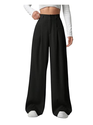 More information about GORGLITTER Women's Office Work Wide Leg Fly Pleated Dress Pants Zipper High Waisted Loose Trousers