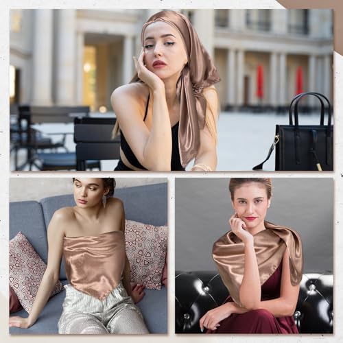 • Generous Size and Versatility: Large 35-inch square satin head scarf for women's hair offers ample coverage for countless styles. Effortlessly create chic head wraps, neck scarves, shawls, or hair bandanas.
