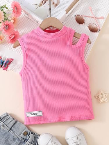 More information about OYOANGLE Girl's Letter Patched Cut Out Sleeveless Round Neck Tank Top Solid Plain Rib Knitted Slim Fit Tops