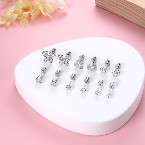 Florideco Hypoallergenic Earrings for Girls Women S925 Sterling Silver Stud Earrings Heart CZ Toddler Earrings Pearl Butterfly Girl Earrings Screw Back Earrings for Sensitive Ears(over 4 years old) 7