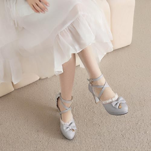 • ➤FINEST QUALITY & COMFORTABLE】: Womens Ladies Kawaii Lolita Mary Jane Pump Shoes, Simple Sleek Glitter Ruffles Sweet Bow vamp;Crisscross Ankle Strap Easy On/Off; Anti-slip Platform Lightweight, High Strength, Good Fexibility, Finished with Lightly Cushioned for All Day Comfy and Eco-Friendly Design. Instep ventilation pores for your comfort.
