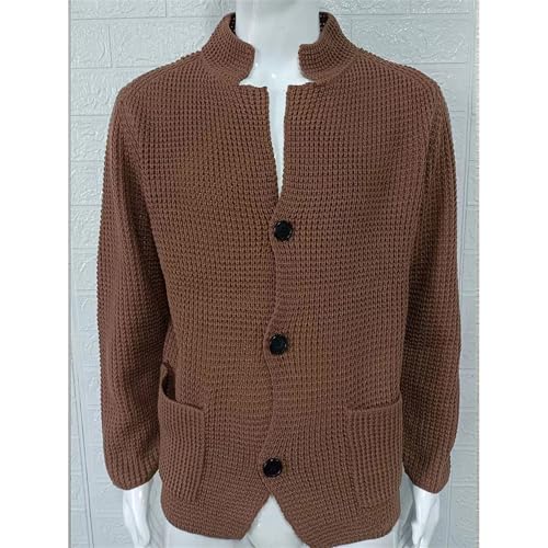 HOT ! Casual Cardigan Sweater for Men Stand Collar Slim Fit Button Down Sweaters Long Sleeve Ribbed Knitted Cardigans