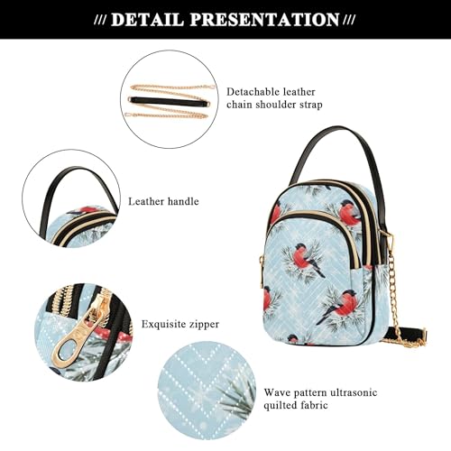 More information about Cute Red Bullfinch Birds Winter Single Shoulder Purse Women Aesthetic Phone Handbag Small Chain Purse Quilted Ladies Crossbody Satchel Bag
