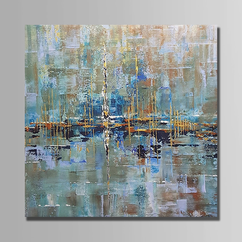 More information about Oil Painting 100% Handmade Hand Painted Wall Art On Canvas Blue Line Abstract Modern Home Decoration Decor Rolled Canvas No Frame Unstretched