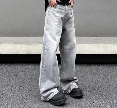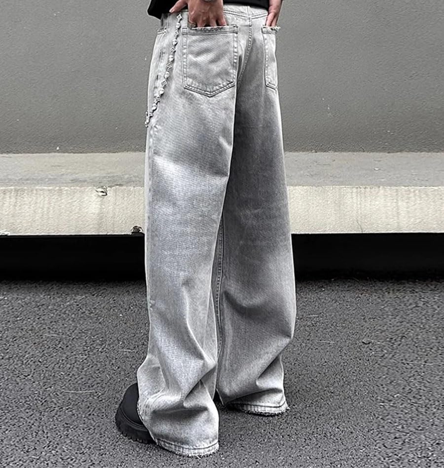 More information about Men’S Distressed Wide Leg Jeans Mid Waist Loose Fit Denim Pants High Street Style Zipper Fly Ripped Design Jeans