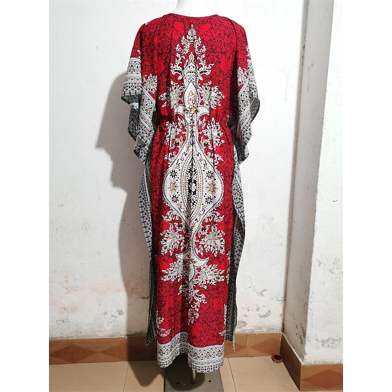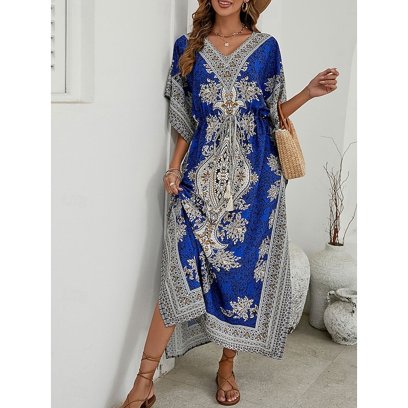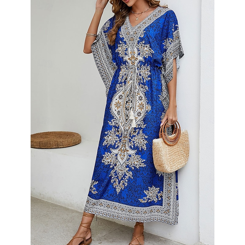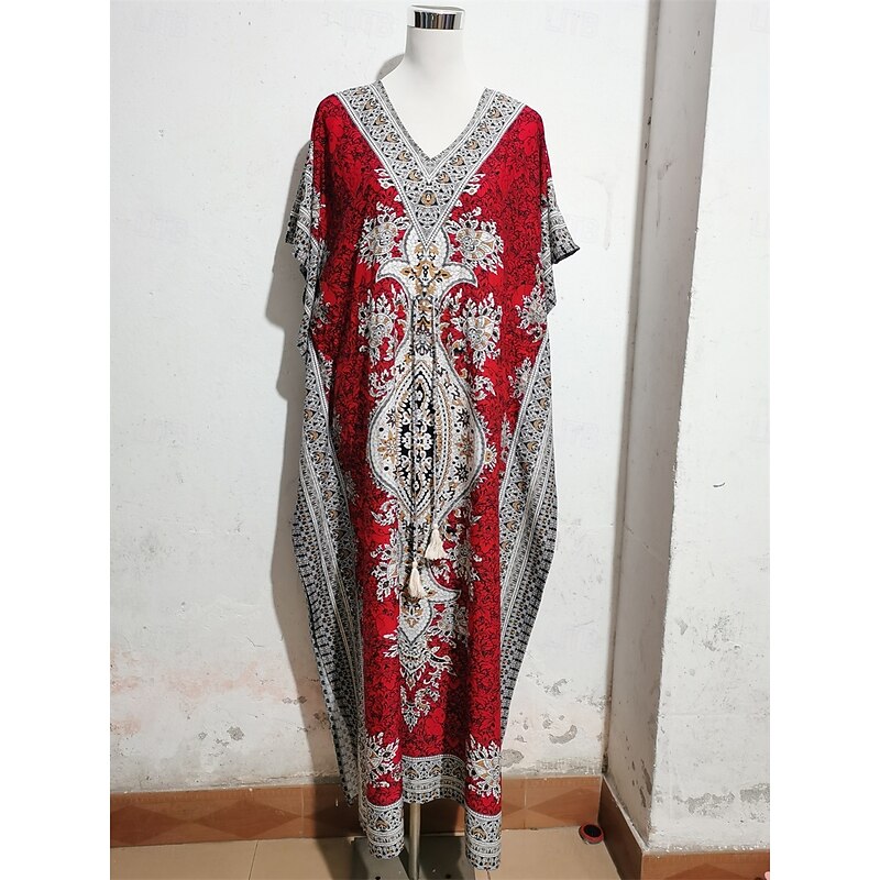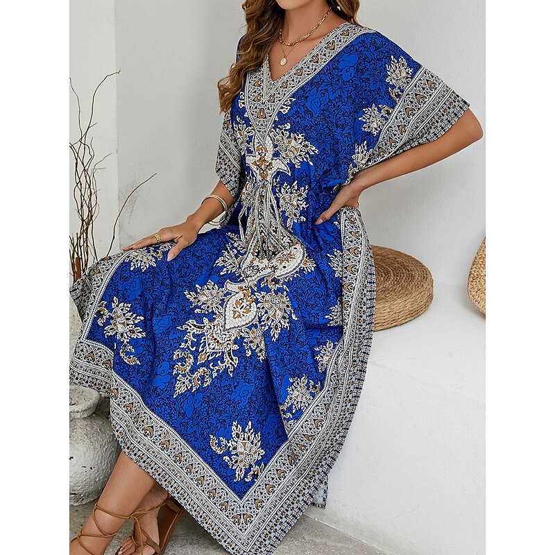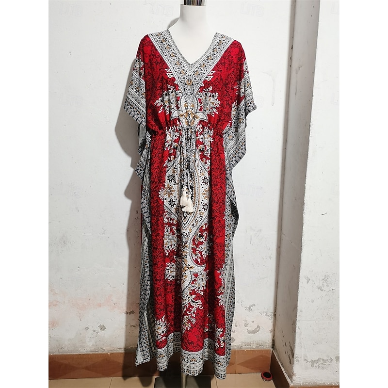More information about Women's Maxi Dress Casual Dress Boho Chic Dresses Boho Dress Bohemia Cute Stylish Vacation Daily Beach Loose Fit Graphic Short Sleeve V Neck Red Blue Summer Spring Fall
