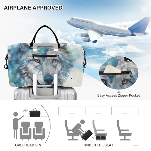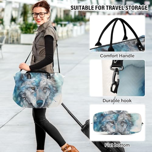 Large Travel Duffel Bag, Wolf Head Blue Sports Tote Gym Bag, Shoulder Weekender Overnight Bag for Women Men, Carry On Luggage with Toiletry Bags 7