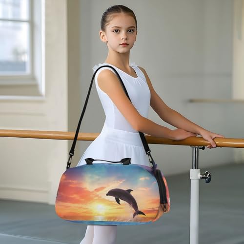 HOT ! Dolphin Duffle Bag for Girl, Sports Duffle Gym Bags with Shoe Compartment, Personalized Overnight Bag Travel Weekender for Kids