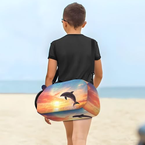 Dolphin Duffle Bag for Girl, Sports Duffle Gym Bags with Shoe Compartment, Personalized Overnight Bag Travel Weekender for Kids 5