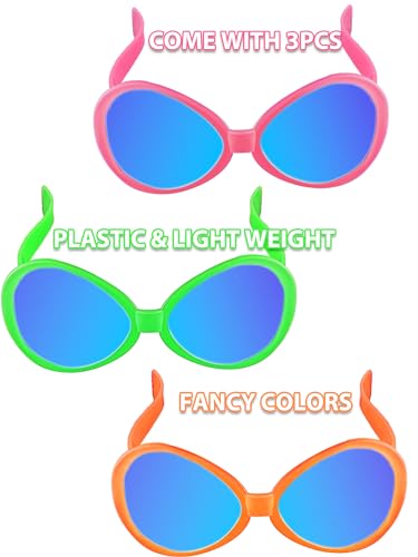 • VALUE SET OF 3:package includes 3 pieces Giant Sunglasses in 3 bright color, approx. 26cm x 11cm.Will be very fuunny dress up accessaries for your activities, normal price but good quality.Our offer will be a good deal, if you want set of novelty party stuff.
