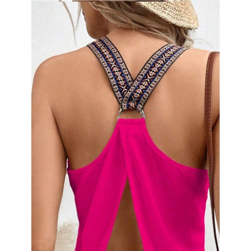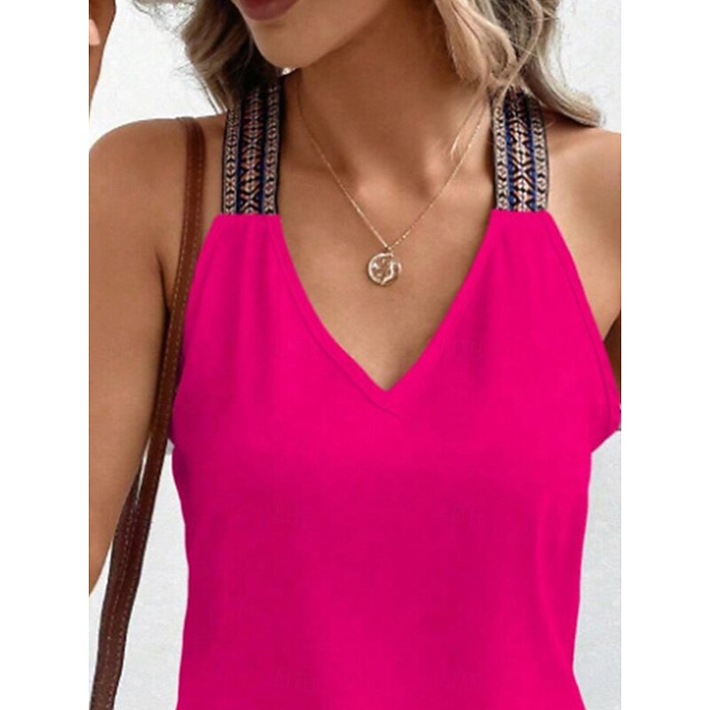 More information about Women's Blouse Graphic Stylish Casual Sleeveless V Neck Regular Tops Daily Patchwork Black Red Summer Spring Fall