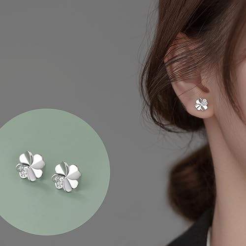 HOT ! Reffeer Solid 925 Sterling Silver Clover Leaf Stud Earrings for Women Teens CZ Clover Stud Earrings Shamrock Earrings Spring