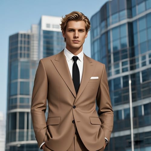 • 【SUIT FEATURES】Slim fit 2-piece suit cut, making you look handsome and charming. The 2 button single-breasted blazer jacket features peak lapel and double vent, 4 sleeve buttons, 2 flap pocket, 1 chest pocke and 1 inner pockets. Flat front pants come with 2 side pockets and 2 hip pockets.