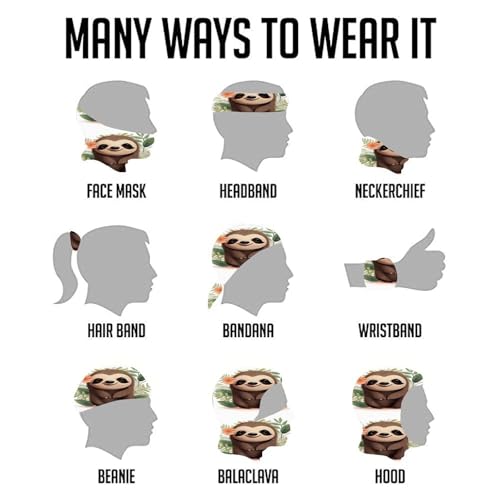 • Multiple Ways to Wear: These Summer UV Avoidation Cute Cartoon Sloth Face Scarves Can Be Applied as Neck Gaiter, Balaclava, Headband, Hair Band, Bandana, Cute Cartoon Sloth Wristband, Hood, Helmet Liner and More, Can Effectively Avoid Your Head, Neck and Face from the Sun, Wind, And Dust