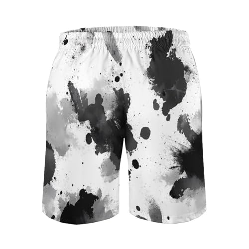Tie-Dye Black and White Ink Jet Men's Swim Trunks Board Shorts Beachshorts Swimsuits with Pockets Mesh Liner 2