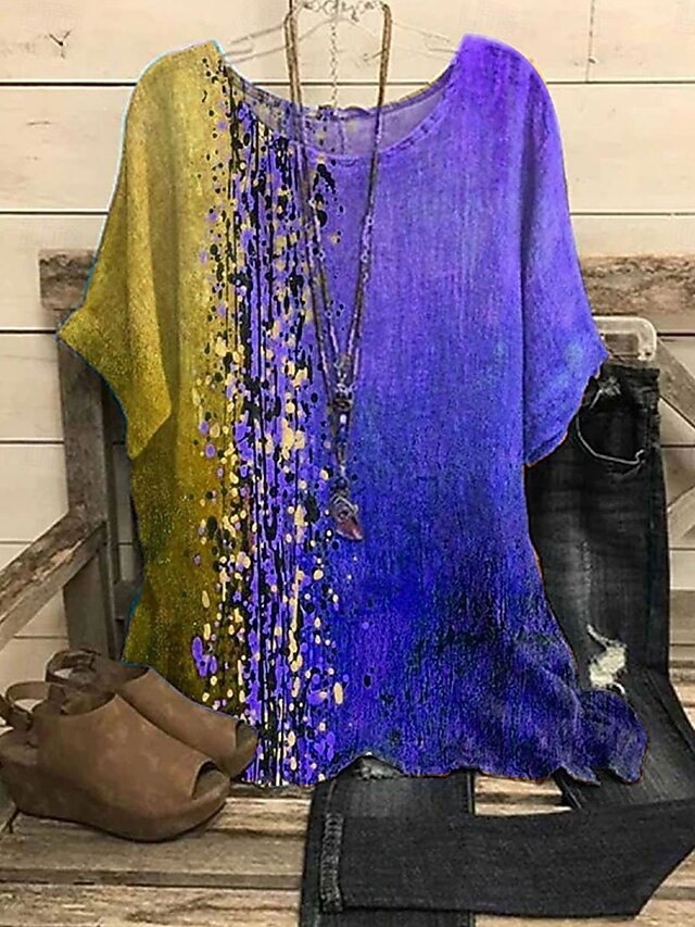 More information about Women's Blouse Floral Casual Half Sleeve Crew Neck Regular Tops Work Daily Print Red Purple Orange Green Spring Fall Winter