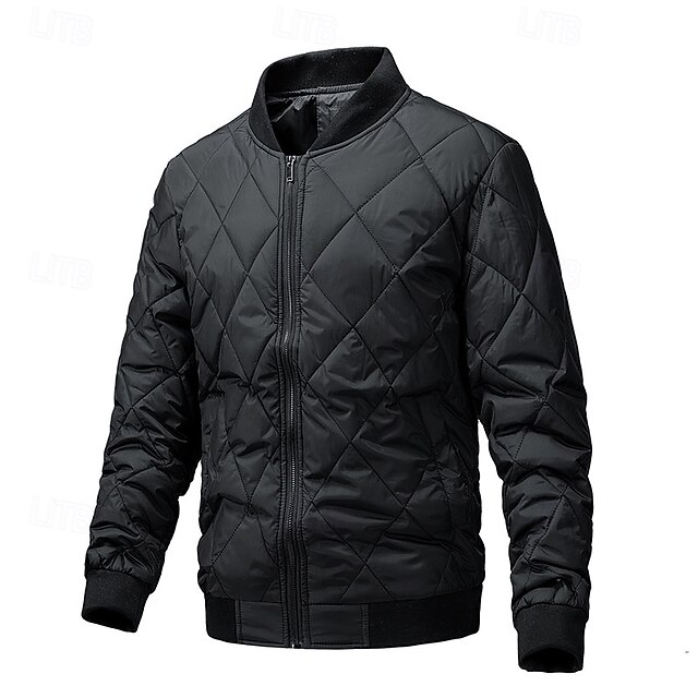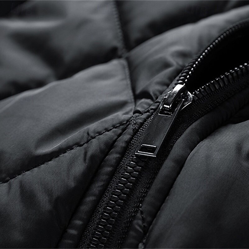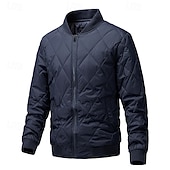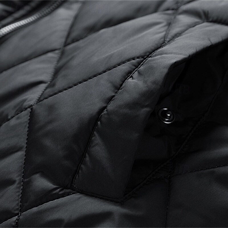 More information about Men's Winter Coat Quilted Jacket Parka Pocket Polyster Vacation Daily Wear Date Regular Fashion Casual Comfortable Thermal Warm Winter Solid / Plain Color Black Green Dark Blue Gray Puffer Jacket