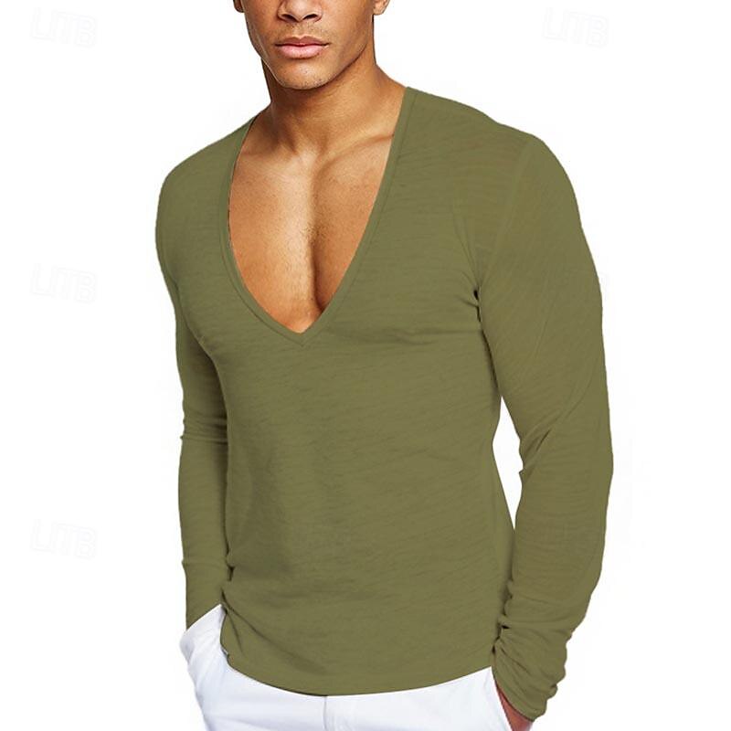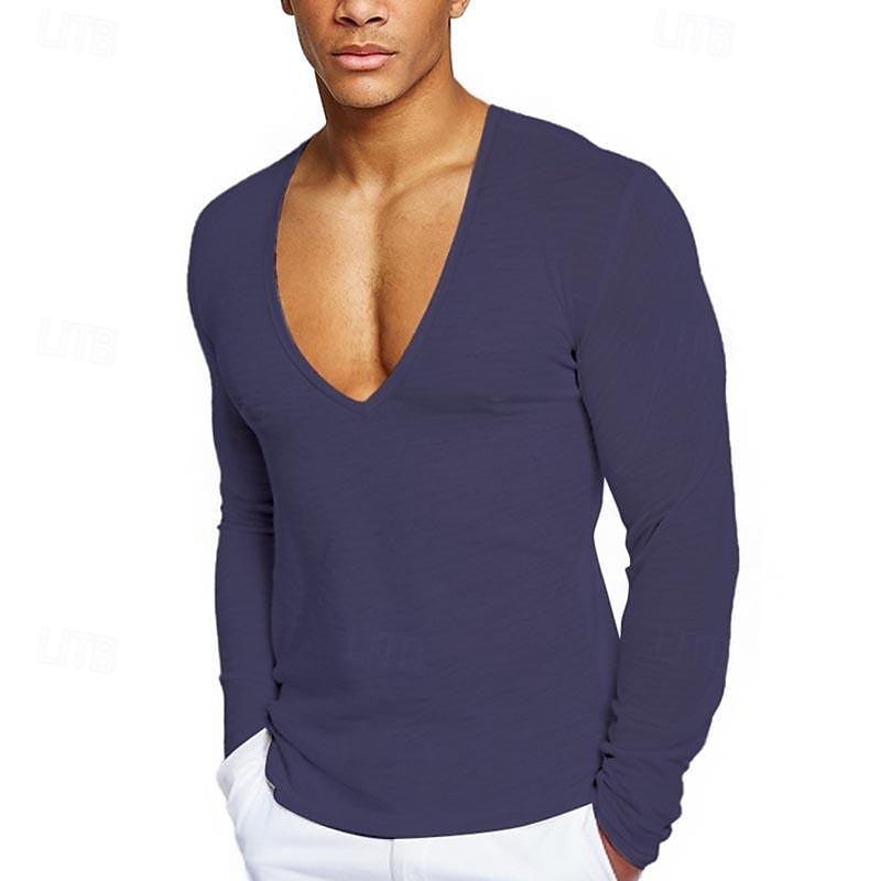 More information about Men's T Shirt Tee Tee Top Long Sleeve Shirt Long Sleeve V Neck Spring & Fall Plain Fashion Designer Basic Vacation Street Going out Wine Black White Top Tee for Men