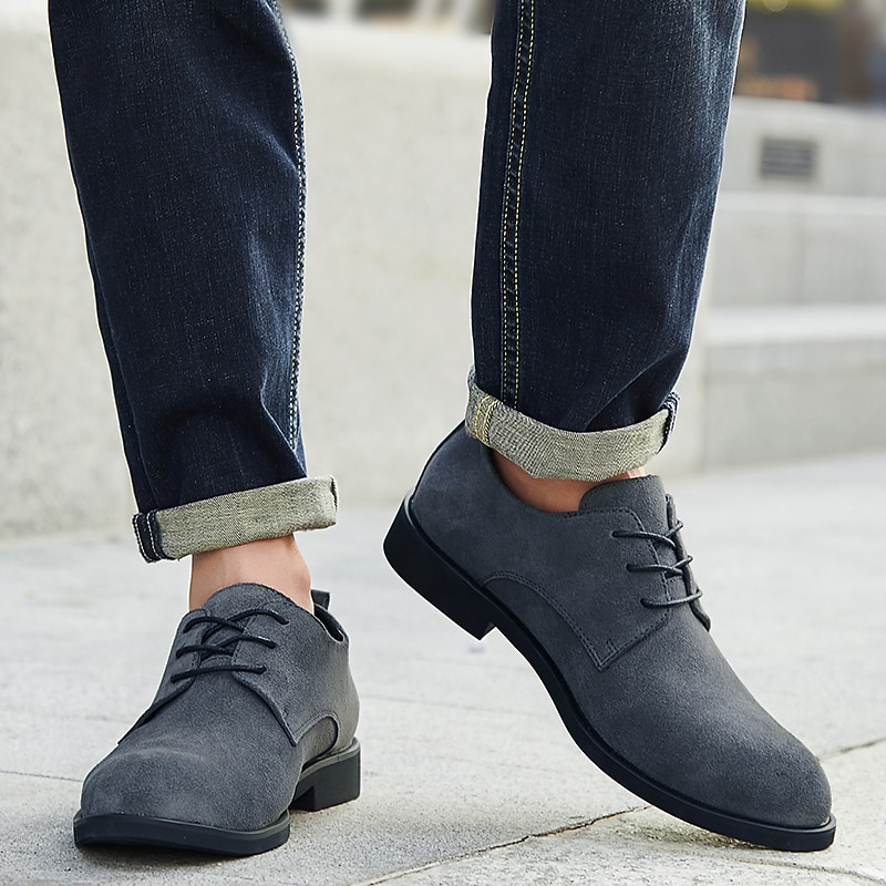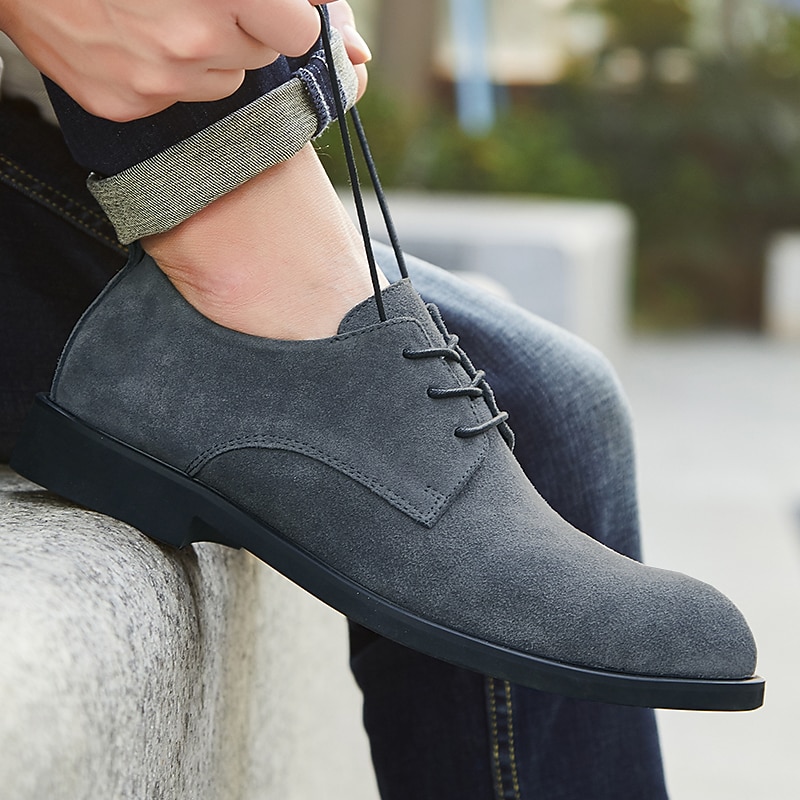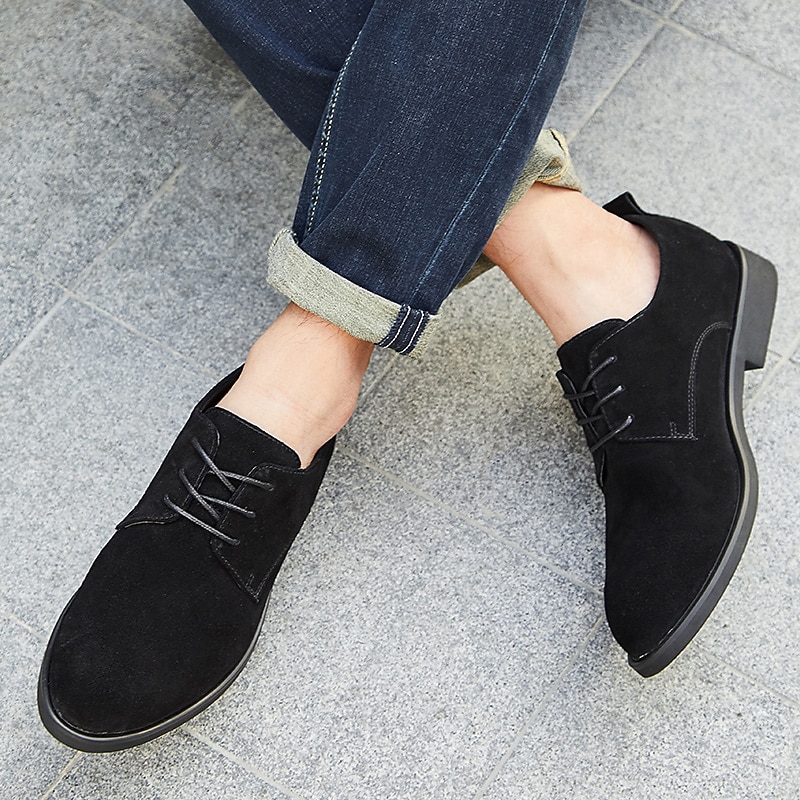 HOT ! Men's Black Suede Oxford Shoes – Classic Lace-Up Design with Non-Slip Sole for Casual and Formal Occasions