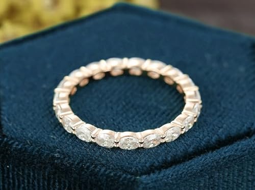 K O J 2x3 MM Oval Cut Full Eternity Round Shaped Cubic Zirconia Engagement Band for Women, Dainty Wedding Band in 925 Sterling Silver, Vintage Gift for Her 5