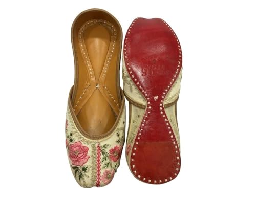 White Multi Print Thread Work Jutti for Women's Soft Flat Ethnic Handmade Traditional Jooti Wedding Indian Shoes 6