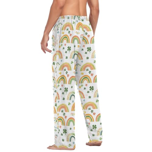 Mens Pajama Pants St Patrick's Day Shamrock Rainbows Soft Lounge Sleep Pj Bottoms with Drawstring Pockets 1