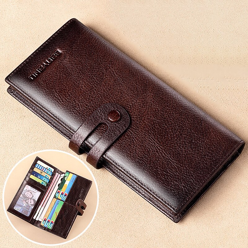 Men's Genuine Leather Long Wallet – Vintage Bifold Clutch with Card Slots & Coin Pocket for Business & Casual Use 14