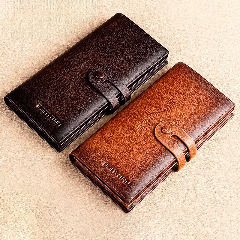 Men's Genuine Leather Long Wallet – Vintage Bifold Clutch with Card Slots & Coin Pocket for Business & Casual Use 10