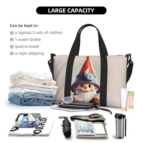 • Large Capacity & Multiple Pockets:This Cute Gnome Hat Travel Tote Bag 1 Main Pocket, Double Zipper Opening And Closing, 2 Patch Pocket And 1 Zipper Pocket Inside,The Overnight Bag Provides Plenty Of Space To Store Your Clothes, Electronics, Toiletries And More, Keeping Your Travel Essentials Organized.