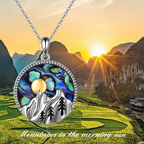 YFN Mountain Necklace Sterling Silver Abalone Shell Mountain Pendant Necklace Nature Jewelry Gift for Skiers, Hikers, Campers, Climbers and Nature Lovers 4