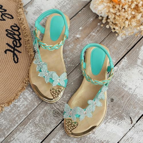 popular ! Flat Sandals for Woman Butterfly Rhinestone Fish Mouth Sandals with Elastic Band Beach Sandal 1 Pair