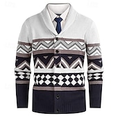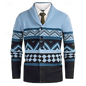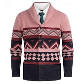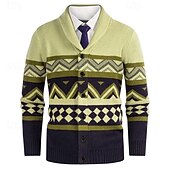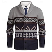 More information about Men's Cardigan Sweater Cropped Sweater Knit Sweater Ribbed Knit Regular Tops Buttons Argyle Lapel Fashion Classic Vacation Daily Wear Clothing Apparel Fall Winter White Yellow S M L