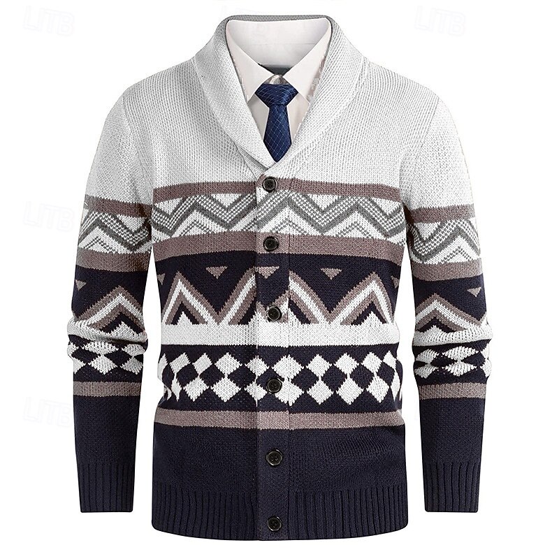 Men's Cardigan Sweater Cropped  Sweater Knit Sweater Ribbed Knit Regular Tops Buttons Argyle Lapel Fashion Classic Vacation Daily Wear Clothing Apparel Fall Winter White Yellow S M L 1
