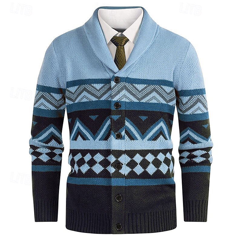 Highlights - Perfect for fall and winter seasons - Made from high-quality polyester fabric - Features long sleeves for added warmth - Designed for men in a classic and casual style - Ideal for date nights or vacation getaways - Stylish button detailing adds a trendy touch - Lapel neckline gives a sophisticated look - Ribbed knit style adds texture and dimension
