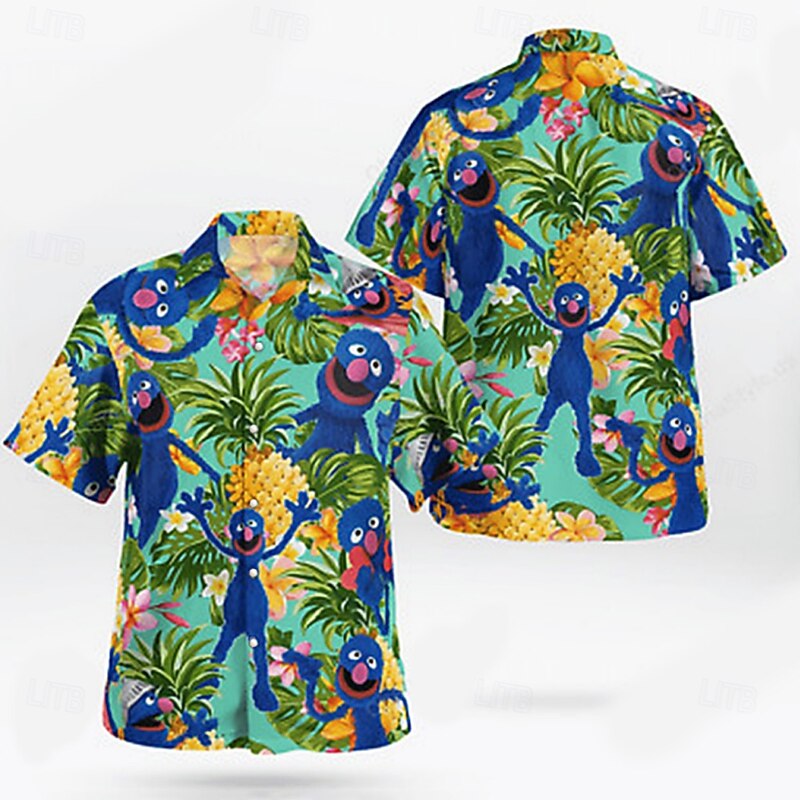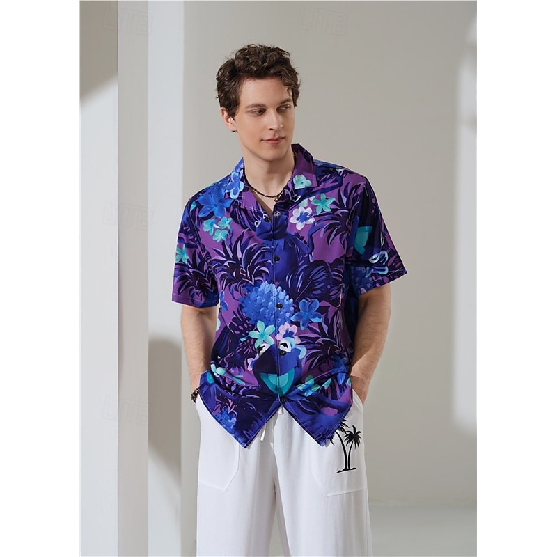 More information about Men's Floral Pineapple Frog Shirt Summer Hawaiian Shirt Aloha Shirt Short Sleeve Shirt Turndown Hawaiian Designer Casual Outdoor Street Casual Red green Olive Green Pink 3D Print S M L