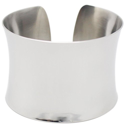 More information about Silver Wide Grooved Cuff Bangle for Women Lady Stainless Steel Shiny Punk Bracelet