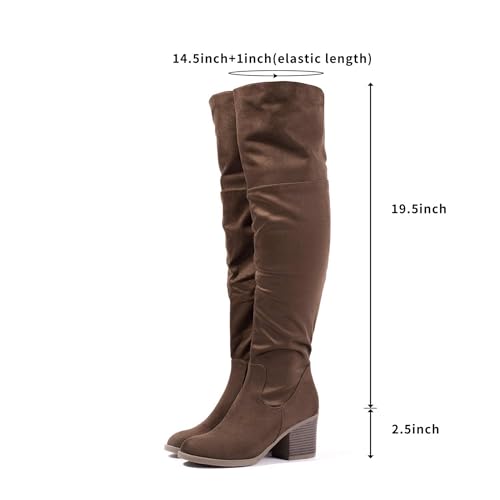 • COMFORTABLE: Over the Knee Boots designed with chunky heels,special design for ladies who can not stand on stiletto;the boots ware comfortable like flats, fit long time walking, but it's much more shape legs than flat shoes;