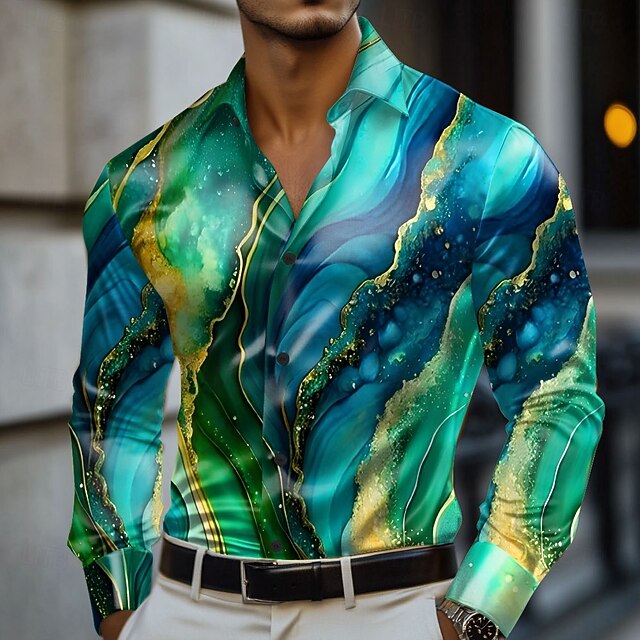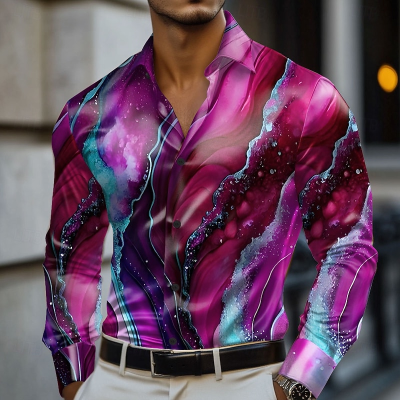 More information about Men's Geometric Marble Abstract Liquid Art Satin Shirt Dress Shirt Long Sleeve Fashion Casual Vacation Holiday Summer Spring Fall Turndown Collared Shirts 3D Print Button Up Shirts Pink Blue Purple