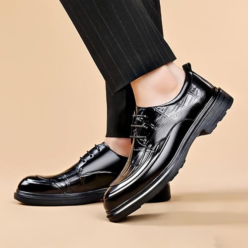 New Men's Leather Business Dress Shoes, Thick Sole Fashion Lace-Up Trendy Shoes, Comfortable for Wedding & Office, Ideal for Men 6