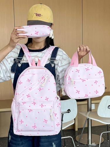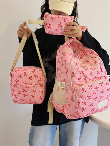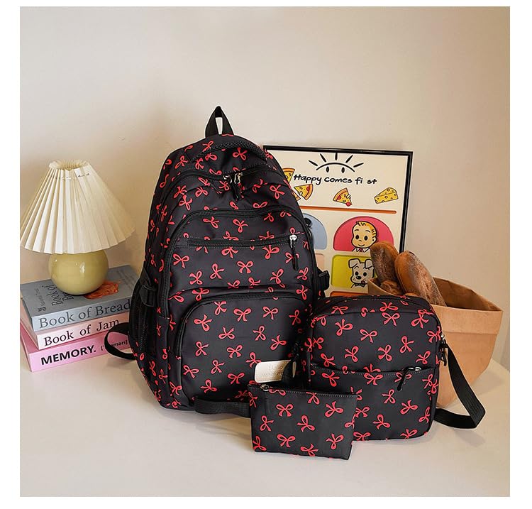 HOT ! Bow Backpack for Women 3Pcs Set Kawaii Coquette Nylon Backpack Cute College Laptop Rucksack Cute Kawaii Backpack (Black)